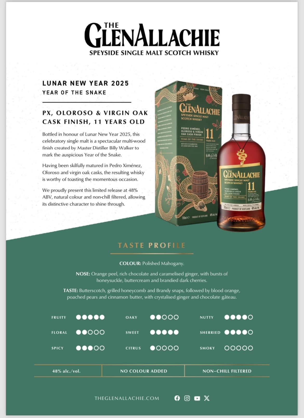 Bottled in honour of Lunar New Year 2025, this celebratory single malt is a spectacular multi-wood finish created by Master Distiller Billy Walker to mark the auspicious Year of the Snake.